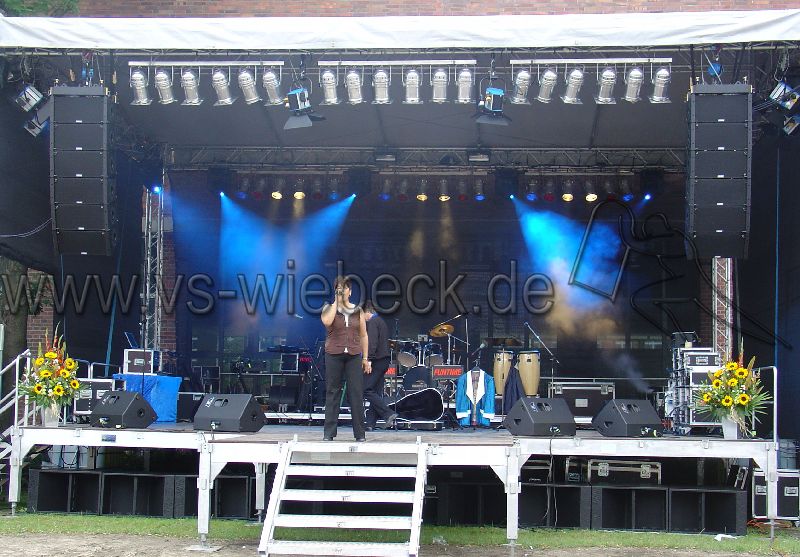 Boxen Front: 8x Boxen "EAW LA 400", 6x Boxen "EAW KF 730", Monitorsystem: 2x "EAW LA 215", Endstufen: 4x "LAB fp 10.000Q", 1x "LAB 2002", Mixer: "Yamaha M7CL", Multicore 40/8 80m mit Stagebox "Connex", Prozessoren : 1x EAW UX8800, Mikrophone: 2x Funkmicrophon UHF "Shure U2" mit Beta 87 Kapsel, 4x Kabelmicrophon "SM 57 / 58", 1x Drumset, Zusatzgeräte: CD- / MD- / DAT- Abspielmöglichkeit, 4x aktive DI-Box "Audiotec", incl.: Kabelsatz, Auf- und Abbau, max. 6 Stunden Einsatzzeit, 2x techn. Betreuungspersonal